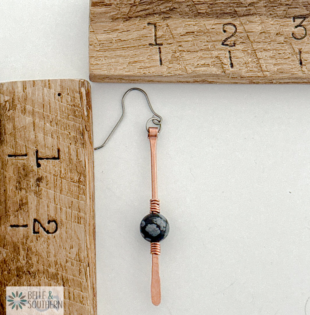 Natural Snowflake Obsidian • Copper Stem • Titanium Ear Wires